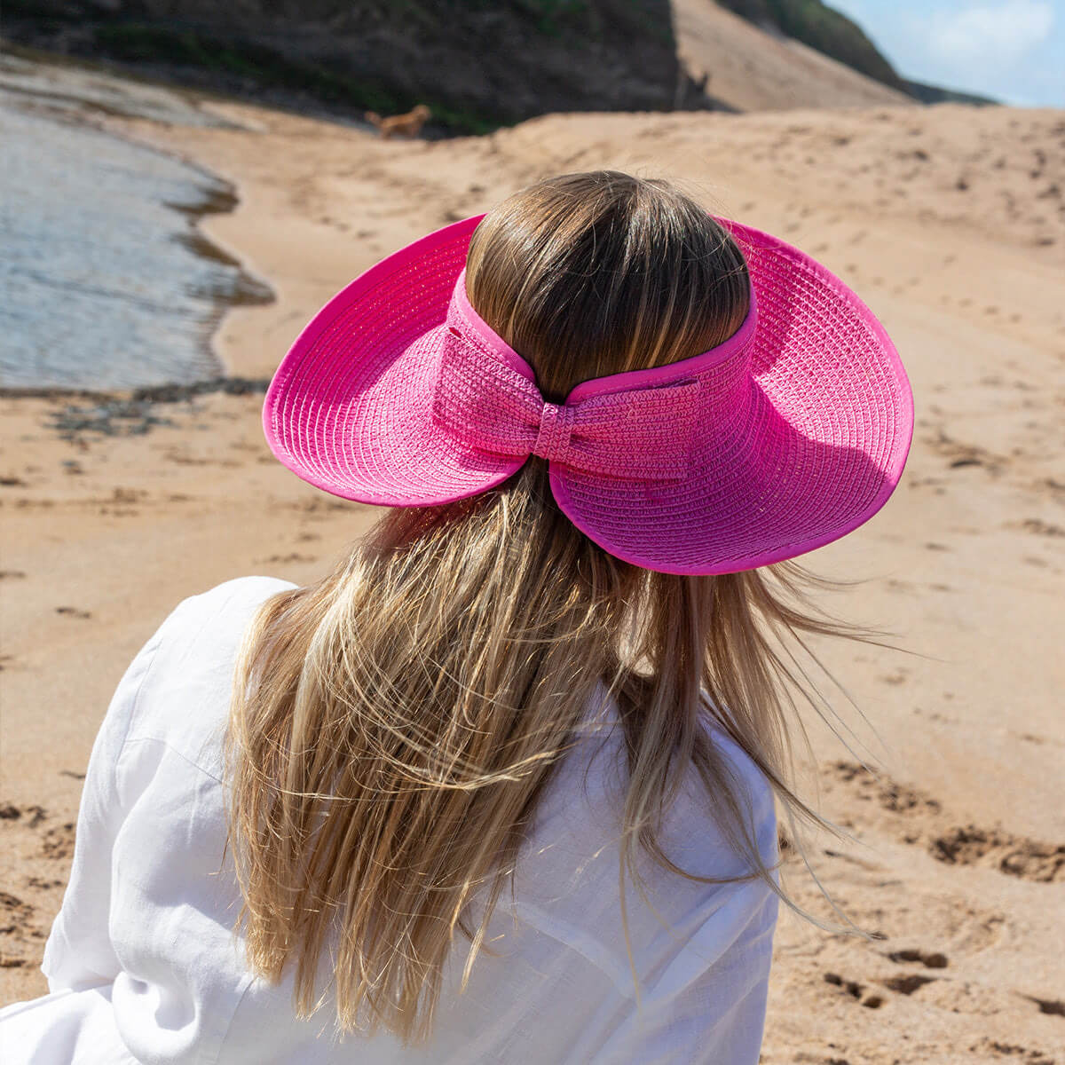 This women’s sun visor provides reliable shade to keep the sun out of your eyes while maintaining a chic, effortless look. The adjustable Velcro fastening ensures a secure and comfortable fit for all-day wear, while the soft bow detail at the back adds a feminine finishing touch.